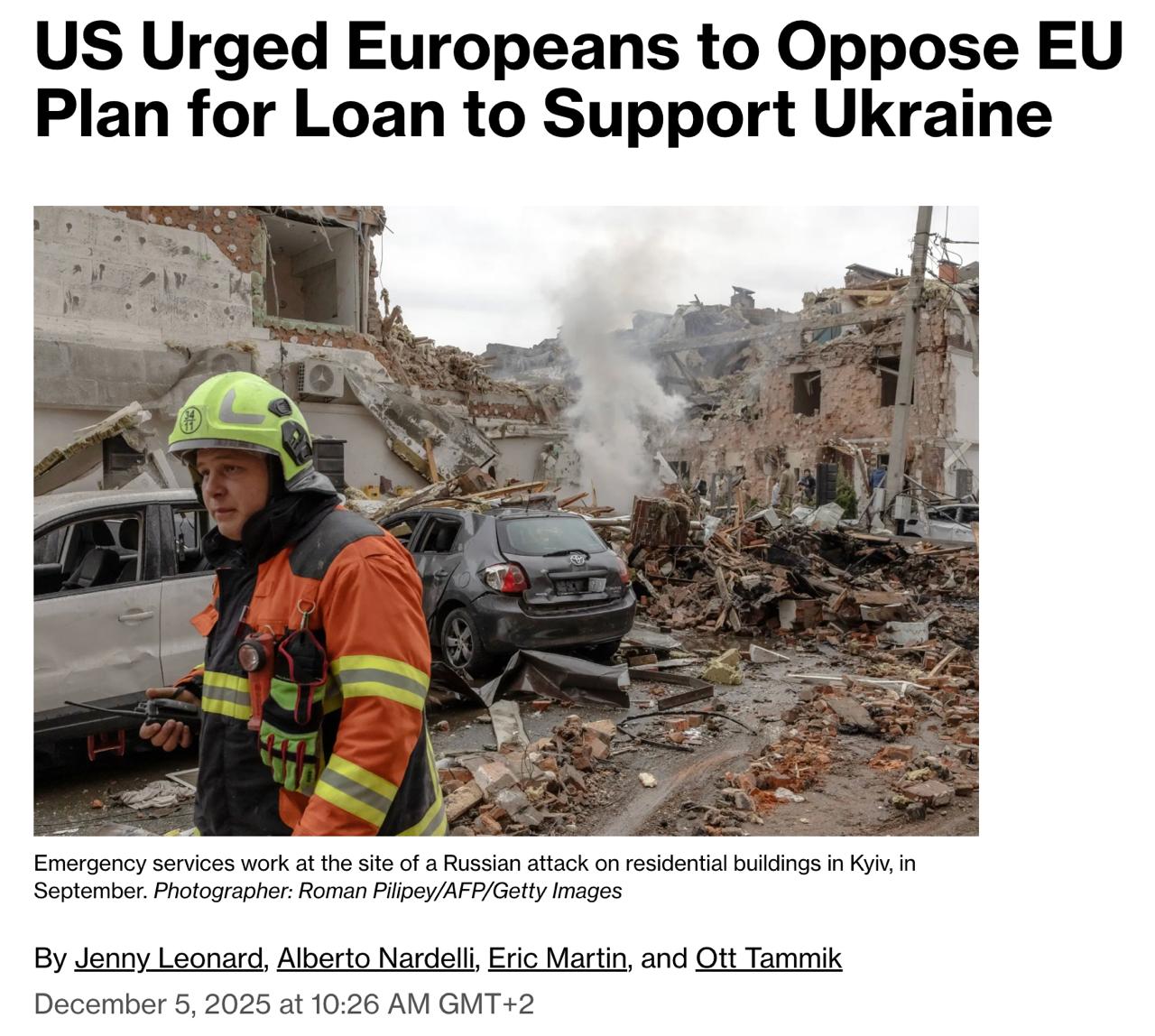 Раніше Politico повідомляло, що мирний план США для України може поставити хрест на ідеї надання Києву репараційного кредиту.