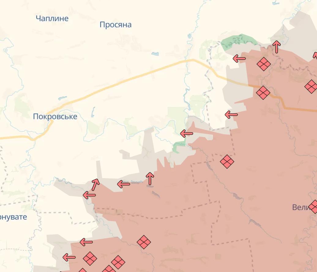 12.34 Армія РФ просунулась на заході Мирнограда і на південь від Сіверська, повідомляє Deep State.