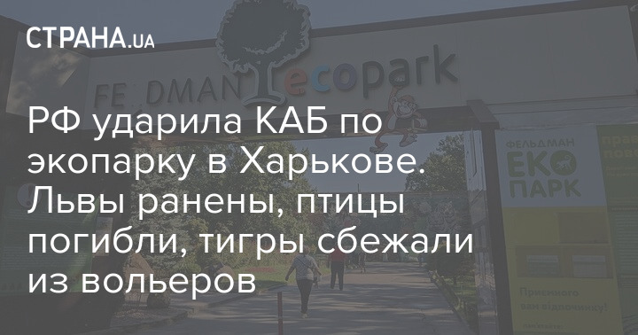 Народний депутат і бізнесмен Олександр Фельдман з посиланням на власника закладу заявив, що через приліт КАБ по харківському екопарку поранено левів, загинуло птахів, зруйновано приміщення для зимівлі хижаків і птахів.