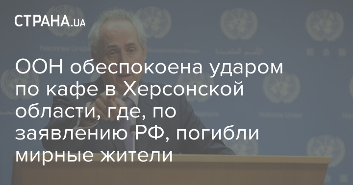 Генеральний секретар Організації Об'єднаних Націй Антоніу Гутерріш висловив стурбованість ударом по кафе на Херсонщині, де, як заявляє РФ, звинувачуючи в ударі Україну, загинули 27 людей.