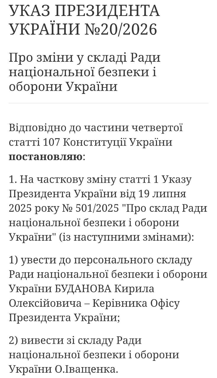 Крім того, до складу РНБО Зеленський запровадив керівника Офісу президента Кирила Буданова та вивів Олексія Іващенка.