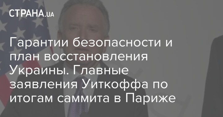 Гарантії безпеки та план відновлення України. Головні заяви Віткоффа за підсумками саміту в Парижі
