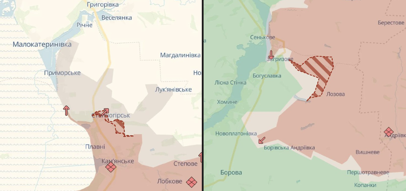 Армія РФ просунулась у Степногірську під Запоріжжям, а також під Боровою Харківської області, повідомляє Deep State.