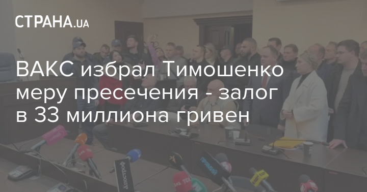 Вищий антикорупційний суд обрав голові партії "Батьківщина" Юлії Тимошенко запобіжний захід у вигляді застави у розмірі 33 мільйони гривень, хоча Спеціалізована антикорупційна прокуратура просила 50 мільйонів.