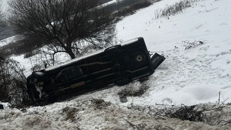 В Ужгородському районі на Закарпатті через ожеледицю перекинувся мікроавтобус із дітьми.
