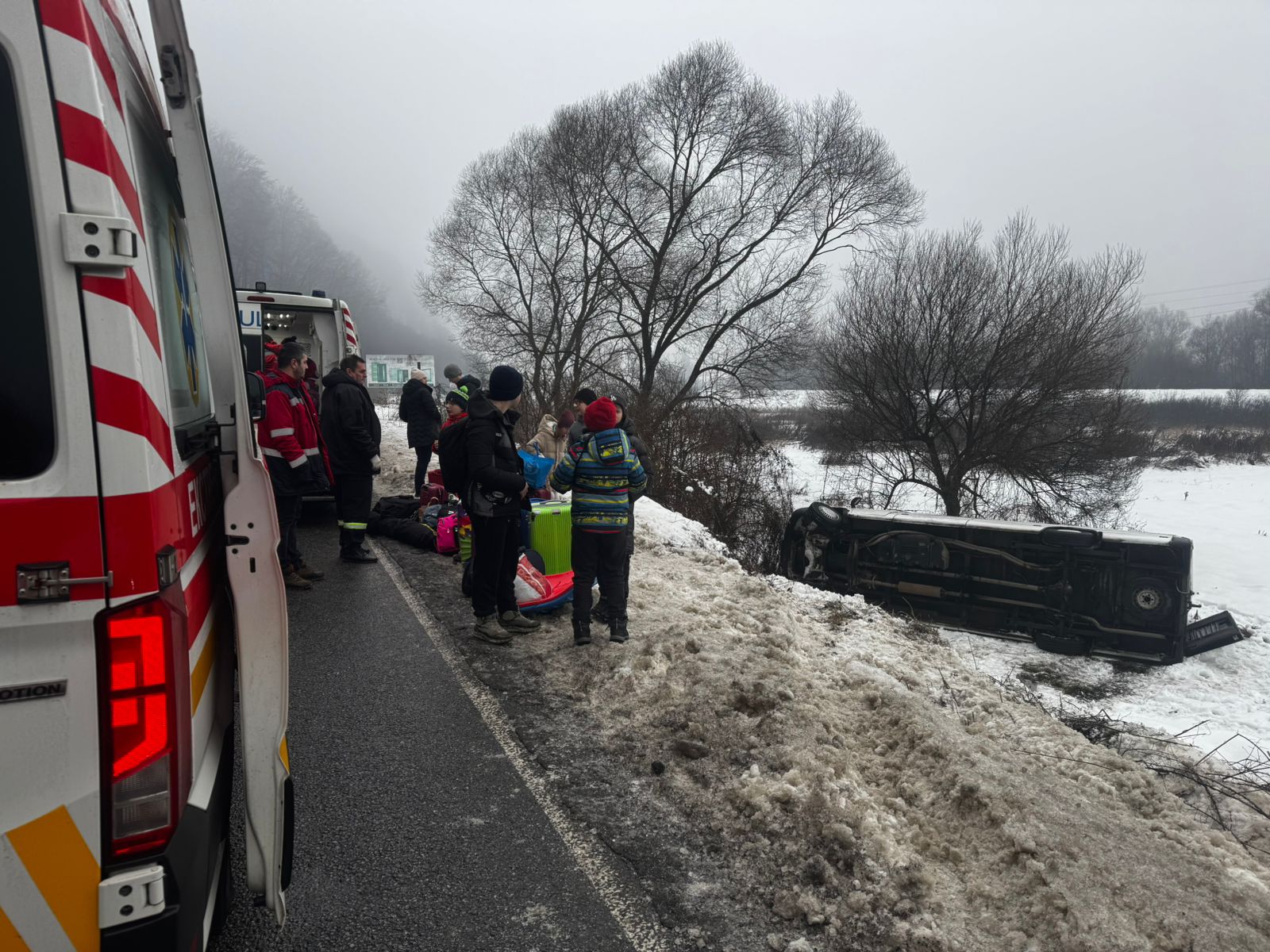 Через зледеніння траси між Перечином та Заречиним перекинувся мікроавтобус Mercedes Sprinter, який вез дітей з Києва на Закарпаття на відпочинок.