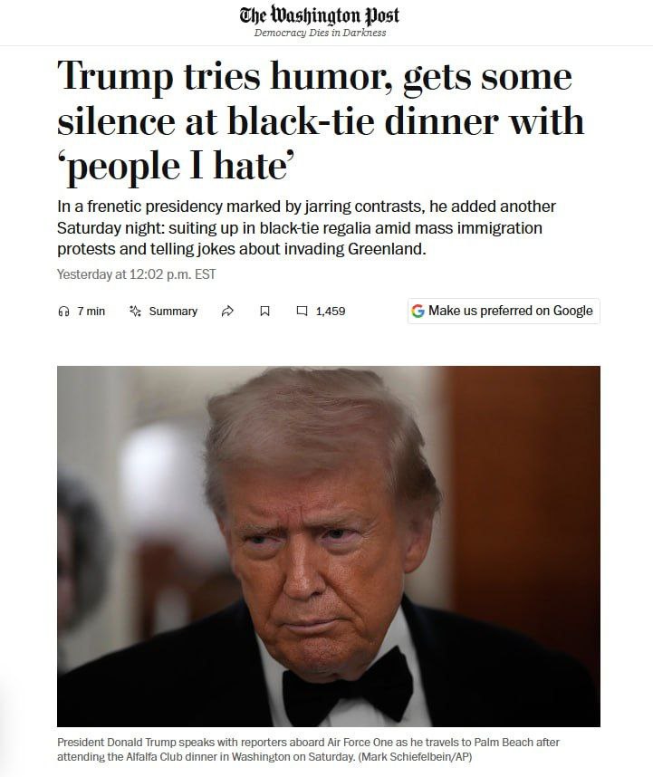 Під час своєї промови Трамп також пожартував, що скоротить спіч, бо хоче "подивитися на вторгнення до Гренландії".