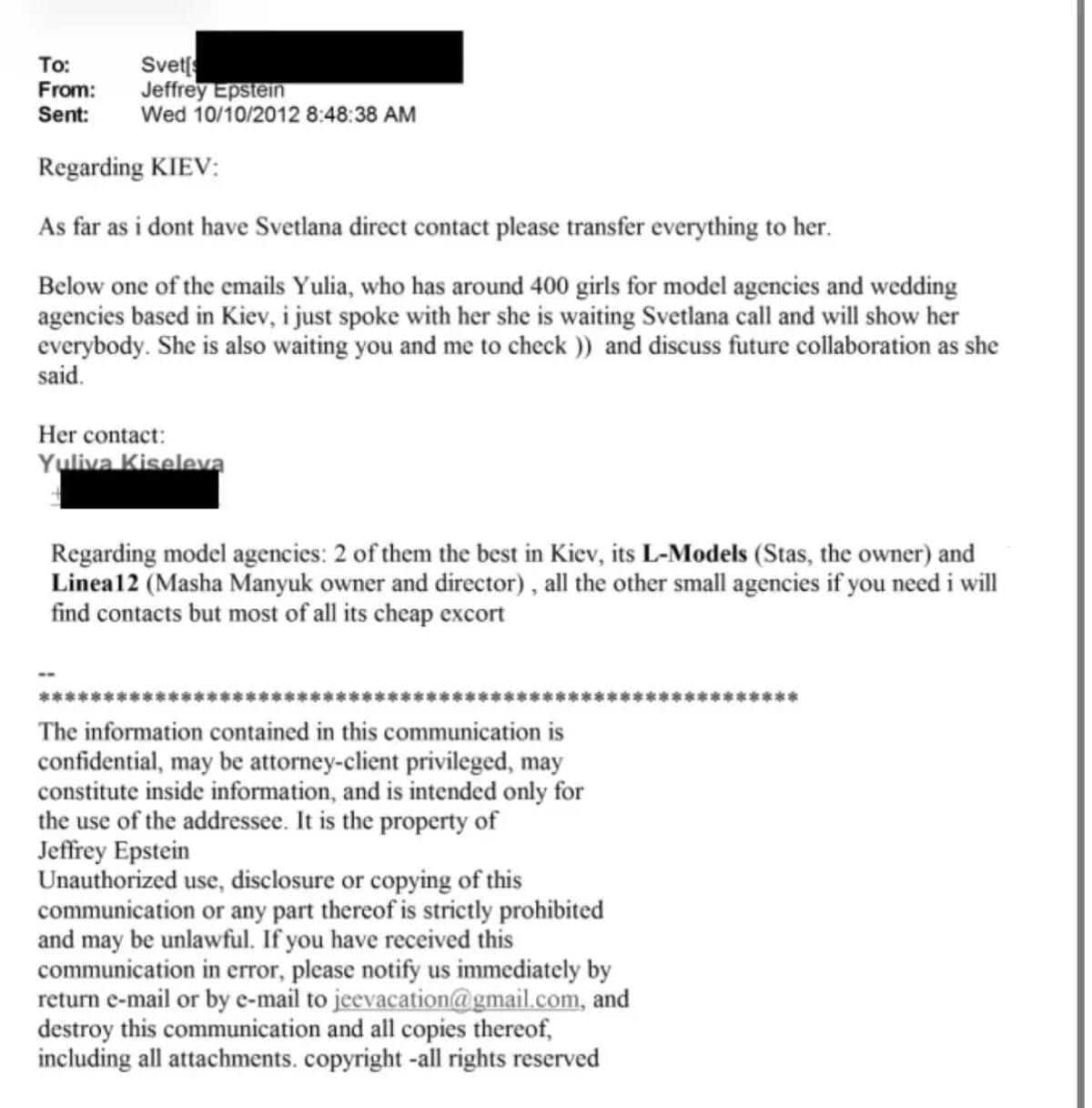 У "файлах Джеффрі Епштейна" згадуються українські моделі та модельні агенції.