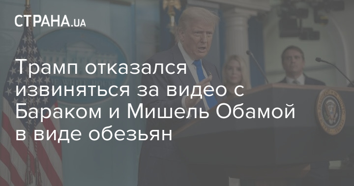 Президент США Дональд Трамп відмовився вибачатися за опубліковане ним відео Барака Обами та його дружини Мішель у вигляді мавп.