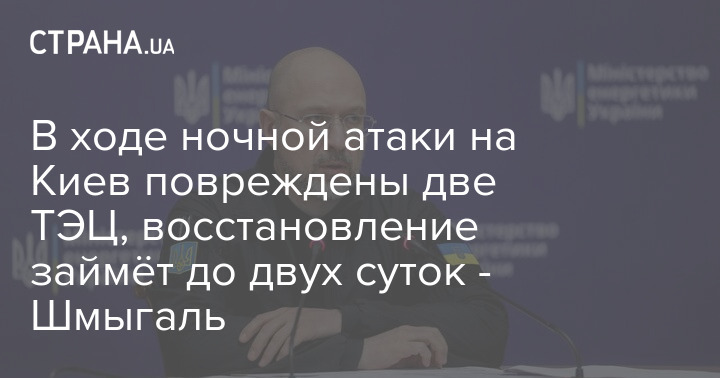 "Сьогодні була атака росіян балістикою, відбулися прильоти уламків по ТЕЦ-5 і ТЕЦ-6 у Києві. Це призвело до пошкоджень газорозподільного та газокомпресорного пристрою на одній з ТЕЦ, на другій розбиті циркулярні насоси, система підготовки води. На ТЕЦ-5, сподіваюся, що за доби", – зазначив Шмигаль.