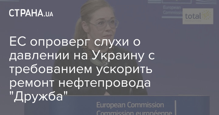 Представник ЄК Ітконнен заявила, що Україну не кваплять ремонтувати "Дружбу". Скріншот
