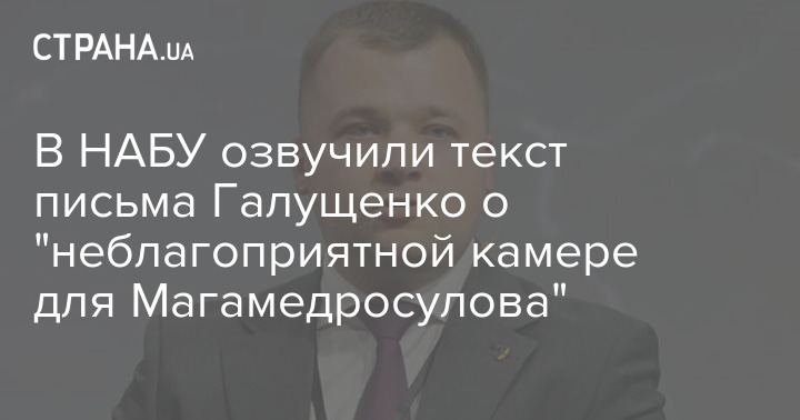 Керівник підрозділу детективів Національного антикорупційного бюро Олександр Абакумов зачитав повний текст повідомлення екс-міністру енергетики Герману Галущенку від заступника міністра юстиції Євгена Пікалова щодо переведення детективу НАБУ Руслана Магамедросулова до камери з поганими умовами з метою покарання.