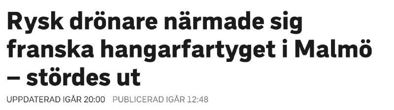 У шведському порту Мальме невідомий дрон наблизився до французького атомного авіаносця "Шарль де Голль", який зараз пришвартований у зв'язку з військовими навчаннями НАТО Orion-26. Безпілотник збив. Уряд Швеції вважає, що він був російським.