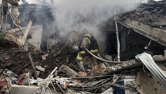 Ведущие рассказывают журналистам о том, что кто бы ни победил в этом году, все равно выиграет Украина.