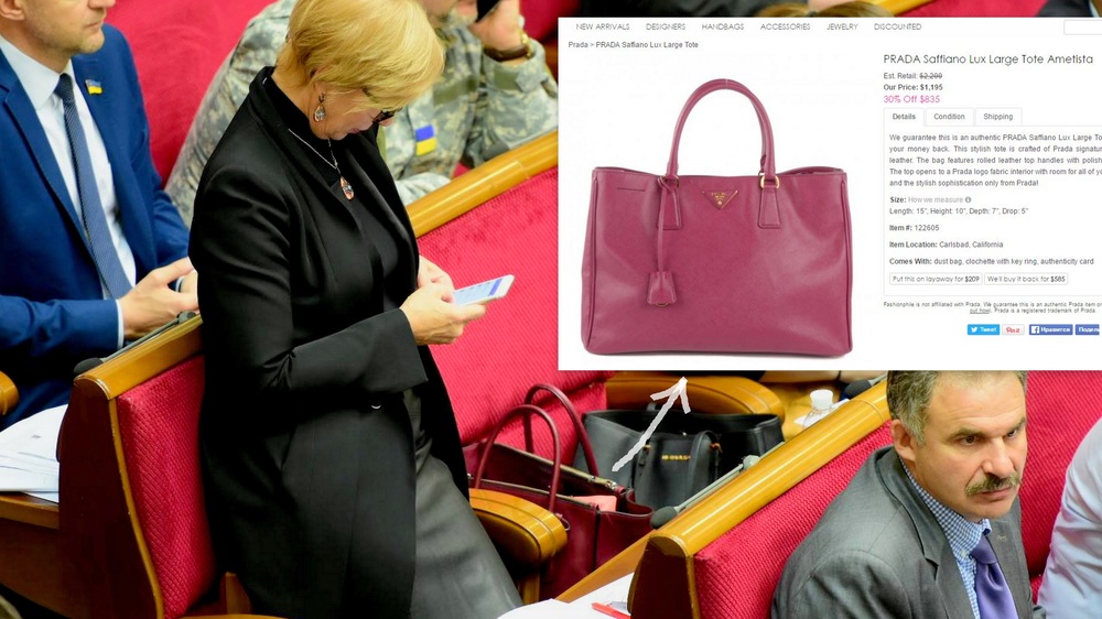 Коллега Луценко по БПП - народный депутат Ирина Суслова вчера продемонстрировала в парламенте свою дорогущую сумку. Оказалось, что она носит аксесcуар итальянского бренда Prada.