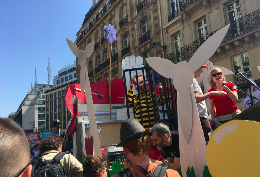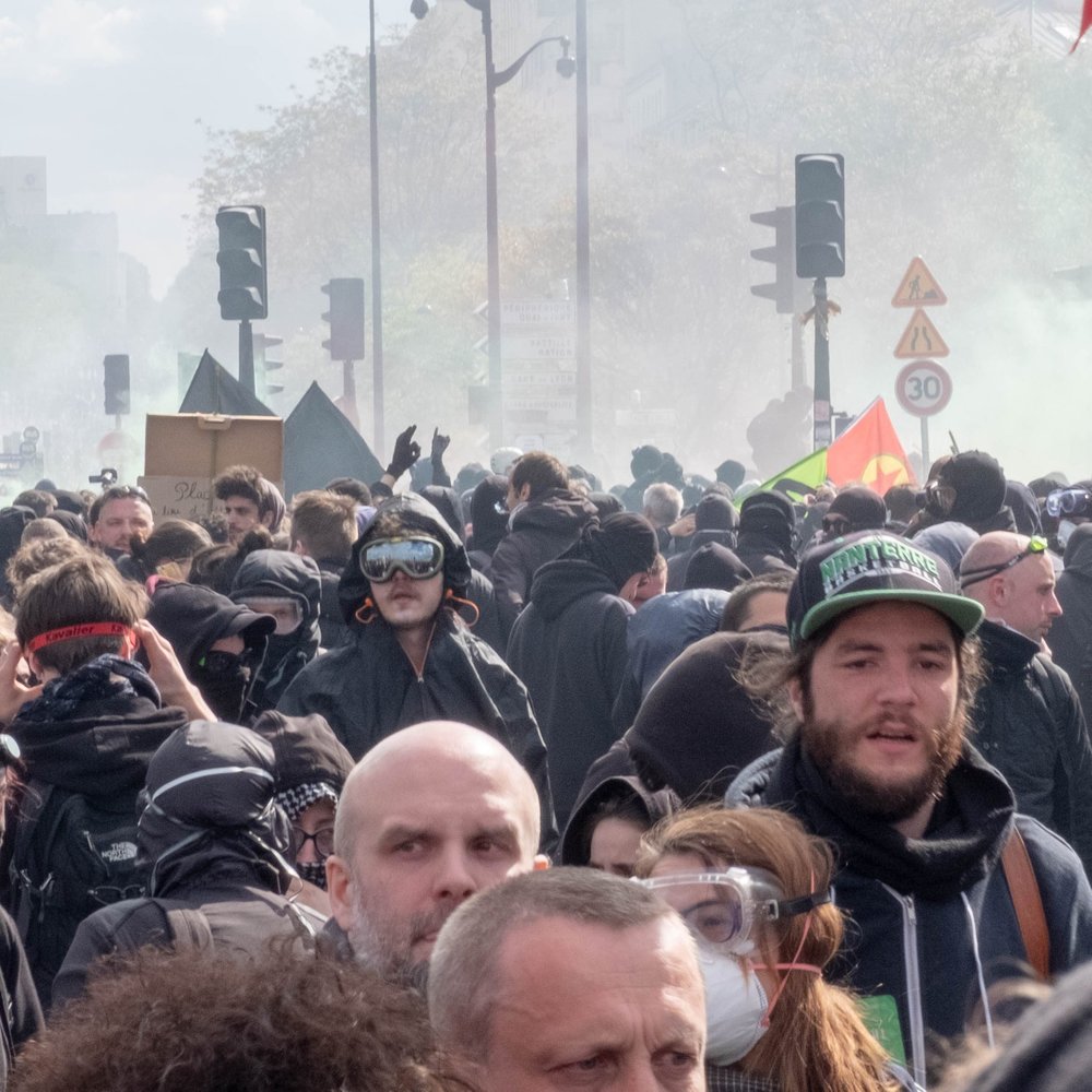 Участники "антимакроновского" шествия 5 мая в Париже превратили митинг в карнавал. Источник фото: twitter.com/Jer_Lamothe