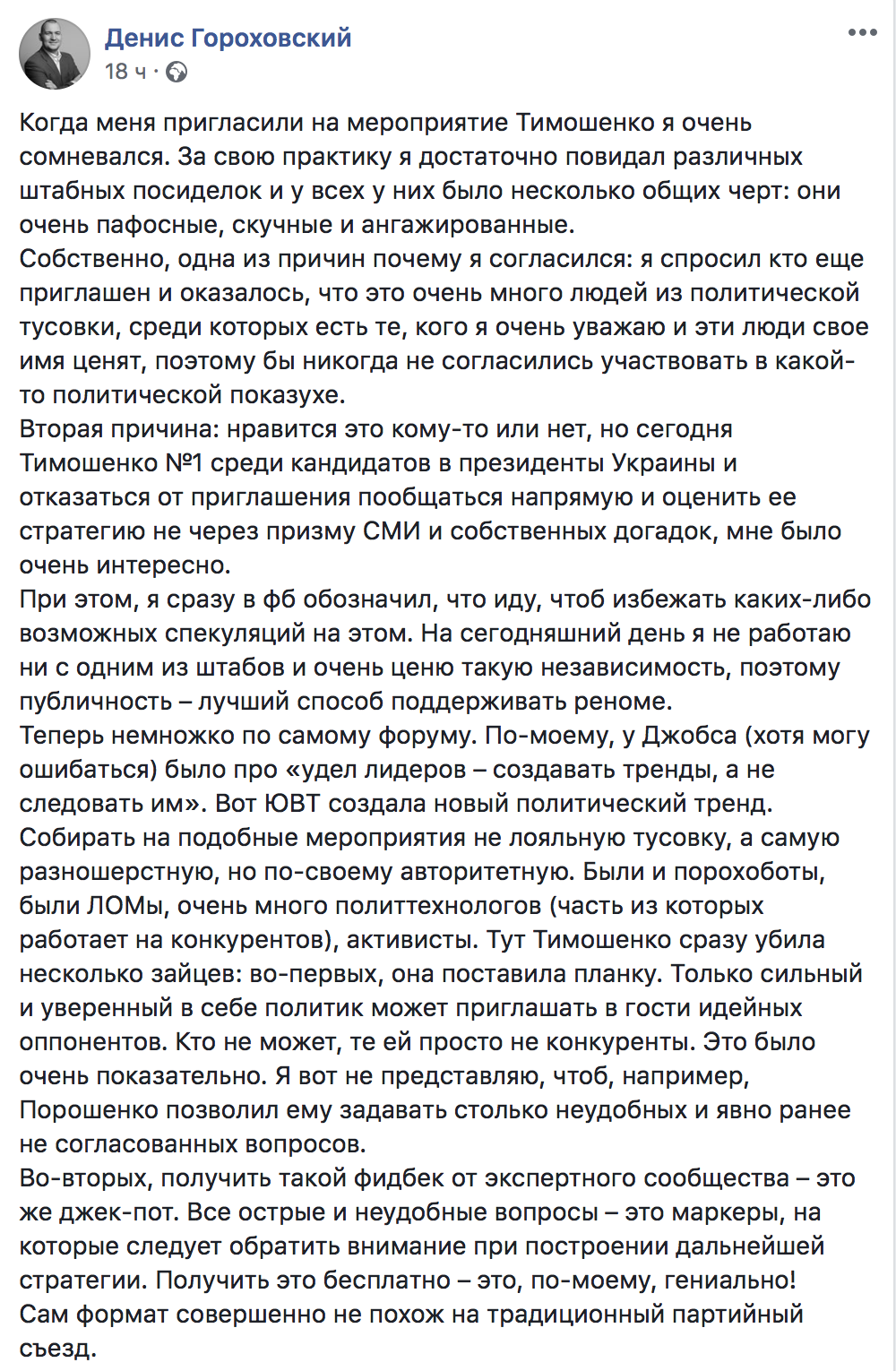 А вот блогеру Денису Гороховскому выступление Тимошенко и форум понравились.