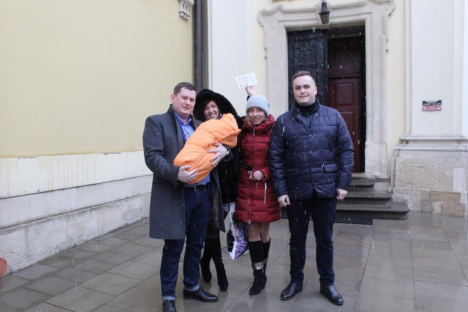 В феврале этого года Холодницкий (крайний справа) крестил младшего сына Олега Наконечного. Фото: Facebook Олега Наконечного
