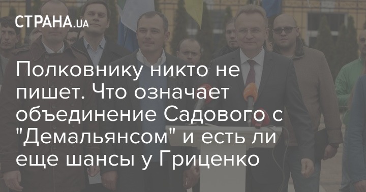 "Понятно, что главным конкурентом Садового является Гриценко. И присоединение Демальянса усиливает наши позиции в борьбе с полковником (Анатолием Гриценко - Прим.Ред.), а также увеличивает шансы для мэра Львова получить на выборах президента более 5 процентов, что даст нашей партии хорошую перспективу и на парламентских выборах", - сказал нам источник в окружении Садового.