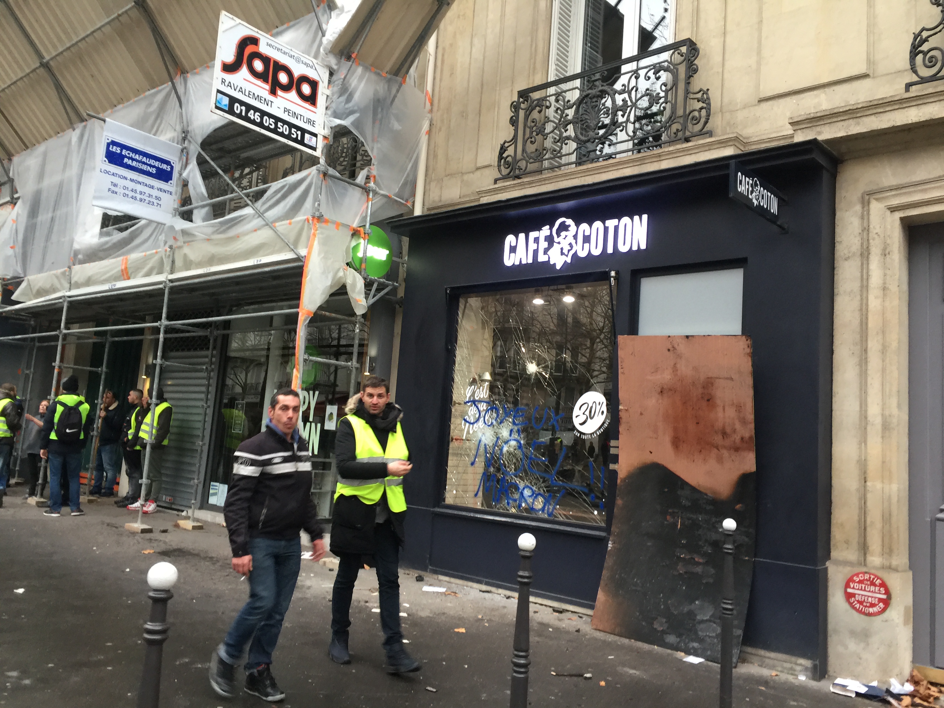 Заведенные, они крушат магазины, рестораны, банкоматы – прилегающие к Елисейским полям улочки усеяны осколками разбитых вдребезги витрин и стекол машин тех, кто имел неосторожность оставить их припаркованными (сожгут или в лучшем случае разобьют лобовое стекло).