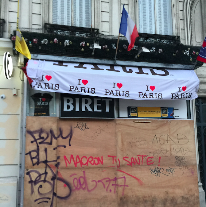 Типичная картина революционного Парижа в выходные – заколоченные наглухо магазины и рестораны. Доски, впрочем, быстро разбирают на баррикады. Фото: "Страна"