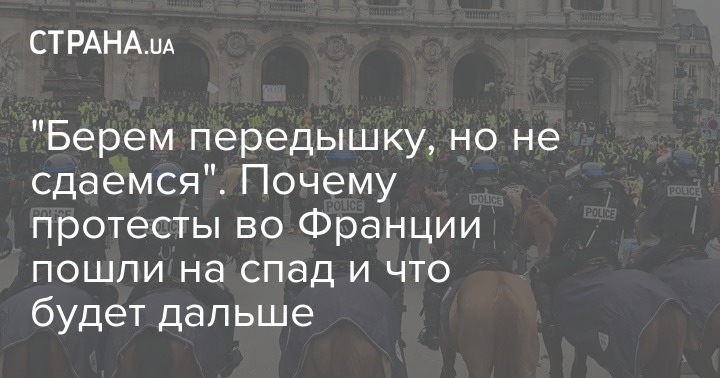 "Все только начинается, мы берем передышку, но не сдаемся. Макрон не победил. Он не вернул отмененный налог на богатство, а бедным бросил крохи - 100 евро надбавки, но нам нужна пекарня. Мы - за равные условия для всех, независимо от дохода", - сказал "Стране" Стефан Кол, участник протестов "желтых жилетов".