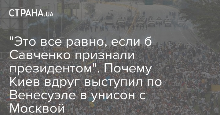 Часть экспертов полагает, что признания протестов лидерами мировых держав, когда оппозиционер Гуайдо просто объявил себя президентом, равноценно назначению Трампом президента Франции из рядов "желтых жилетов". Или назначение, без всяких выборов, президентом Украины Надежды Савченко.