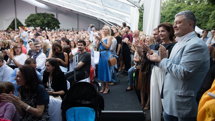 В субботу, 29 июня, на фесте засветился Петр Порошенко с женой Мариной. С утра бывший президент посетил Лычаковское кладбище-музей с могилой погибшего ровно три года назад в АТО местного оперного певца Василия Слипака, где молился и говорил скорбные речи, а через пару часов уже весело зажигал на фестивале.