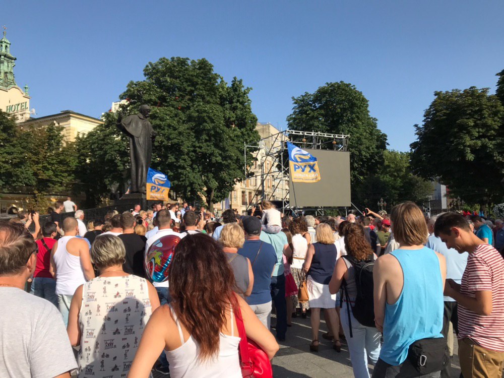 Саакашвили 30 июня вечером пришли послушать сторонники объединенных националистов, которые собираются на марш. Фото: администратор группы "Львовская политика" в Facebook Ирина Марушкина