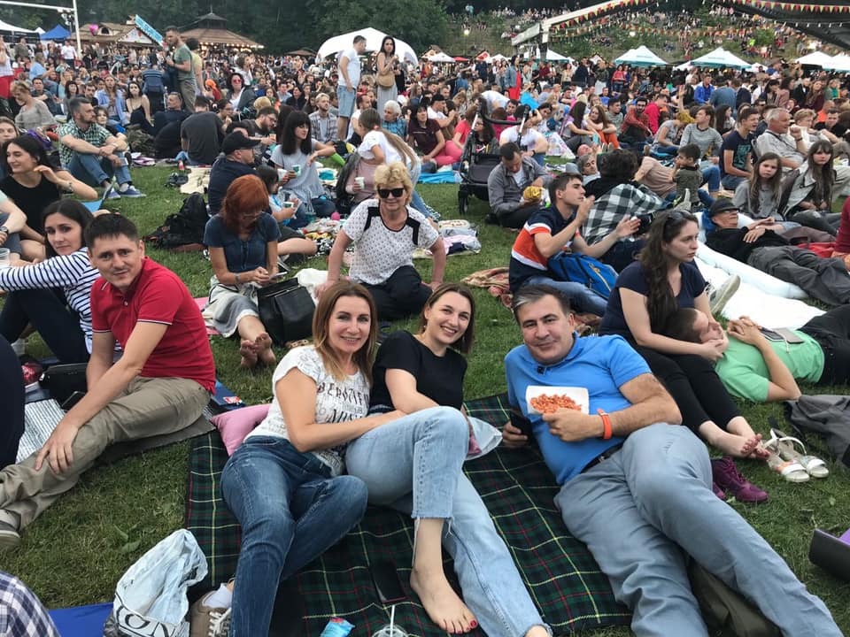 На травке в парке культуры, где находилась одна из сцен феста, можно было встретить Михаила Саакашвили. Михо, жена которого Сандра Рулофс в Тбилиси сейчас участвует в антиправительственных протестах, решил совместить приятное с полезным.