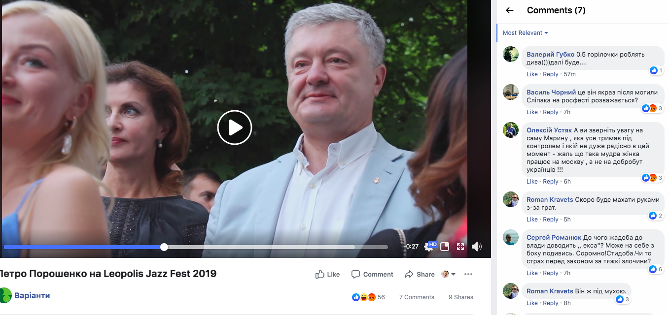 "Это он как раз после могилы Слипака на росфесте развлекается?", - комментирует видео с Порошенко львовянин Василий Чорный.