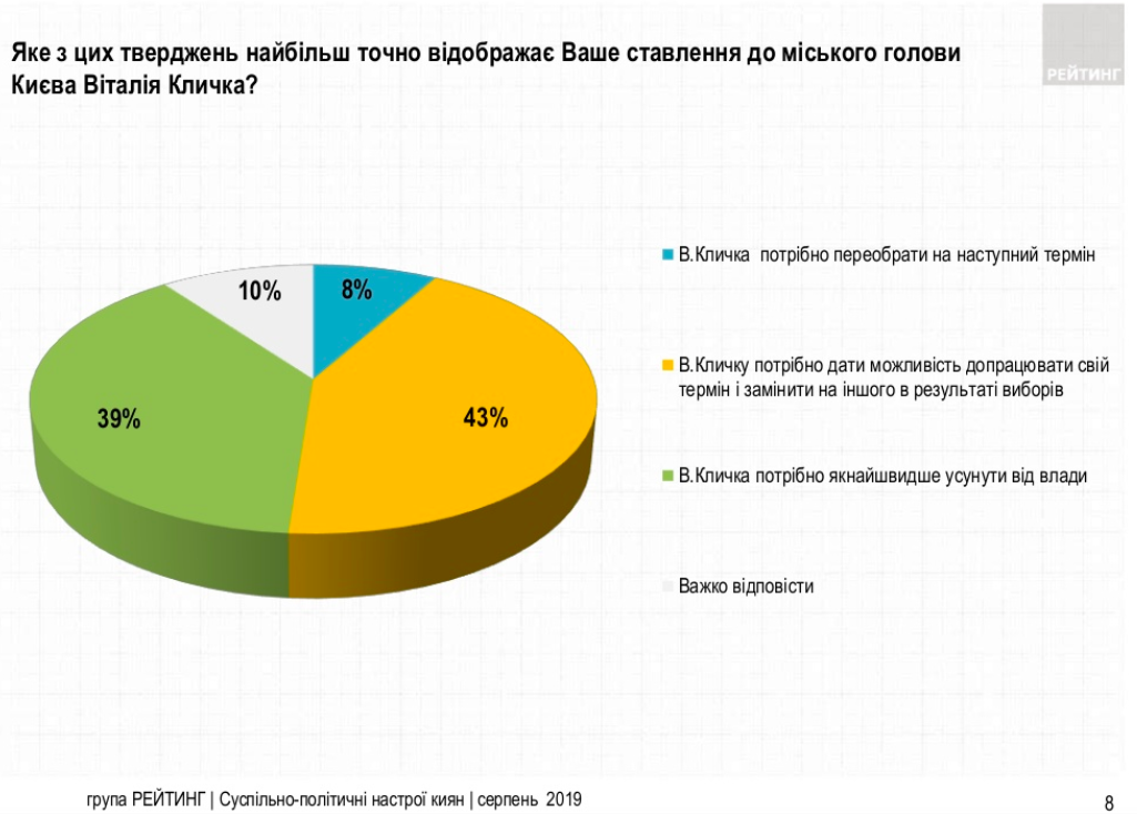 А то, что второй тур неизбежен, это факт. Новый законопроект четко прописывает, что если кандидат не набирает более 50% поддержки киевлян в первом туре, тогда проводится второй тур. Между тем, последний опрос группы "Рейтинг" показал, что деятельностью мэра Киева Виталия Кличко довольны 30%, не удовлетворены – 56%. И всего 8% горожан хотят, чтобы Кличко переизбрался в третий раз на пост городского головы.