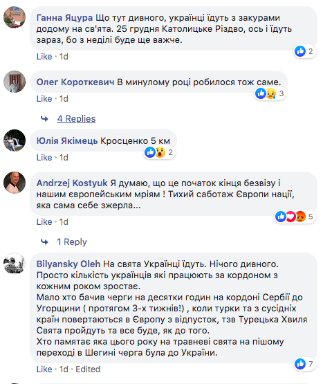 "Жена вернулась из Польши электричкой и такое рассказывала, что это уже совсем не смешно. Украинские таможенники с какой-то неистовой злобой, бешеным хамством и постоянным криком проверяли вещи пассажиров. И это все на фоне плача детей, которые на праздники ехали к родным. А у всех на глазах хотели забрать личные компьютеры у студентов, потому что у них не было с собой чеков на покупку. А еще убеждали их, что это товар, который стоит более 500 евро и поэтому нельзя беспошлинно ввозить. А поезд из-заф этого опоздал на 2,5 часа. Объясните, что это? Некий саботаж? Думаю, что скоро мы увидим очередную чистку в рядах нашей героической таможенной службы", - делится в комментариях львовский журналист Андрей Скоп.