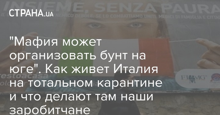 Вместе с тем на фоне экономической и гуманитарной катастрофы обостряется ситуация на юге Италии, где большая доля теневой экономики и традиционно сильны позиции организованной преступности (мафии). Дело в том, что люди, которые не были официально трудоустроены (а имели, в основном, теневой доход) не могут теперь претендовать на помощь государства в связи с вынужденной остановкой работы из-за карантина. И фактически они и их семьи оказались на грани голода.
