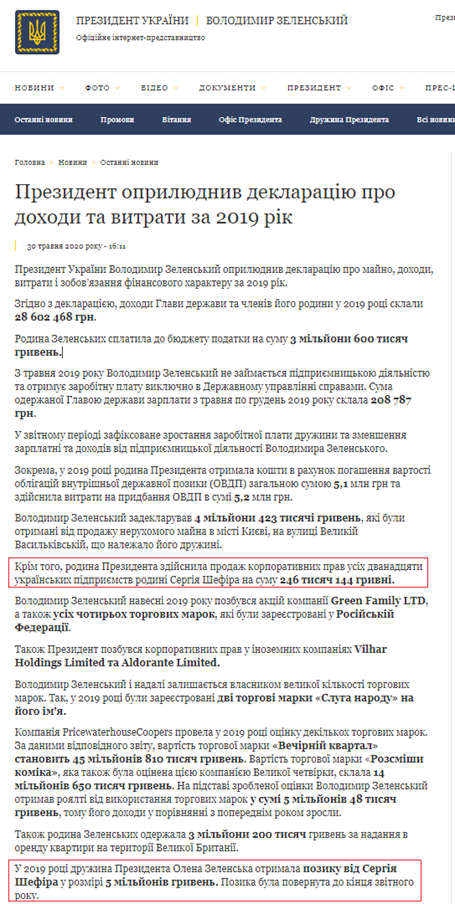 Получается, что сразу после избрания президентом семья Зеленских переписала на Шефиров все свои украинские бизнес-активы. Причем сделано это было за символическую сумму, эквивалентную 9 тыс долл США. И тут же Елена Зеленская "заняла" у покупателя корпоративных прав эквивалент почти 180 тысяч долларов.