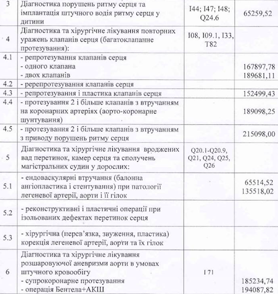 Данные по цифрам Богомолец приводит в своем блоге. Например, диагностика нарушения ритма сердца у ребенка будет стоит 65 тысяч гривен. Репротезирование двух клапанов сердца - почти 190 тысяч гривен. Аневризма сердца - почти 154 тысячи гривен. Стеноз - более 163 тысяч. Шунтирование аорты - 130 тысяч гривен. Коронарный тромбоз - 103 тысячи. Лечение цирроза печени - 111 тысяч.