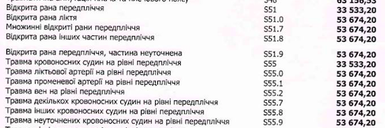 Травматология окажется тоже не дешевой. Например, открытая рана локтя "вытянет" из карманов пациентов около 54 тысяч, а открытая рана предплечья - 33,5 тысячи гривен. Ушиб голени потянет на 71 тысячу гривен.
