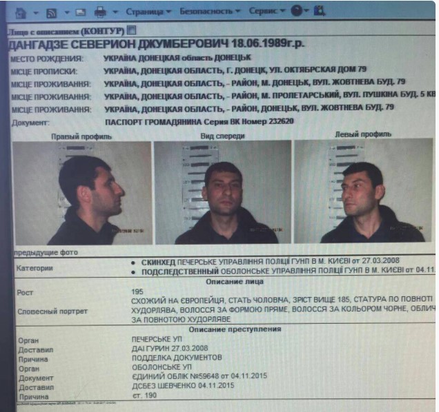 Прочие детали жизненного пути Дангадзе указывают - официальная версия биографии "Севера" содержит ряд белых пятен. А сам он неоднократно попадал в поле зрения правоохранительных органов, будучи внесен в учетную картотеку МВД еще в 2008 году за подделку документов. Интересно, что юноша тогда носил прозвище "Скинхед".