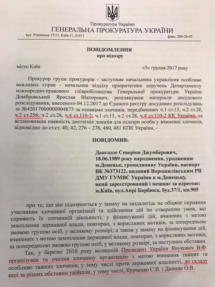Где среди прочего заявляется пять фигурантов разномастной "преступной ОПГ", якобы затеявшей свержение власти в Украине. Это сам Курченко, банкир Дынник, Дангадзе, Саакашвили и ФСБ.