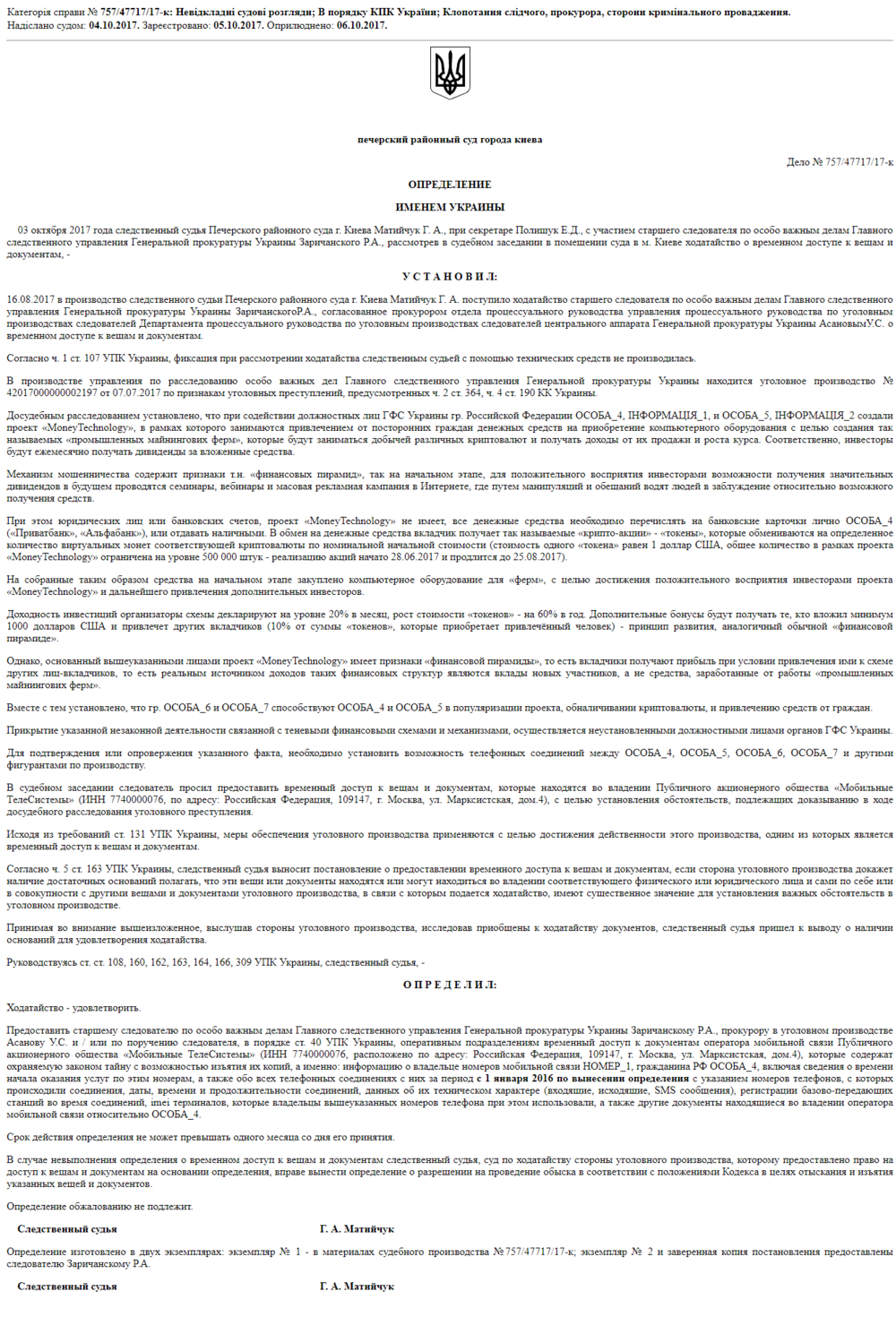 Интересно, что к созданию криптовалютной пирамиды, по мнению следствия, причастны чиновники фискального ведомства — ГФСУ.