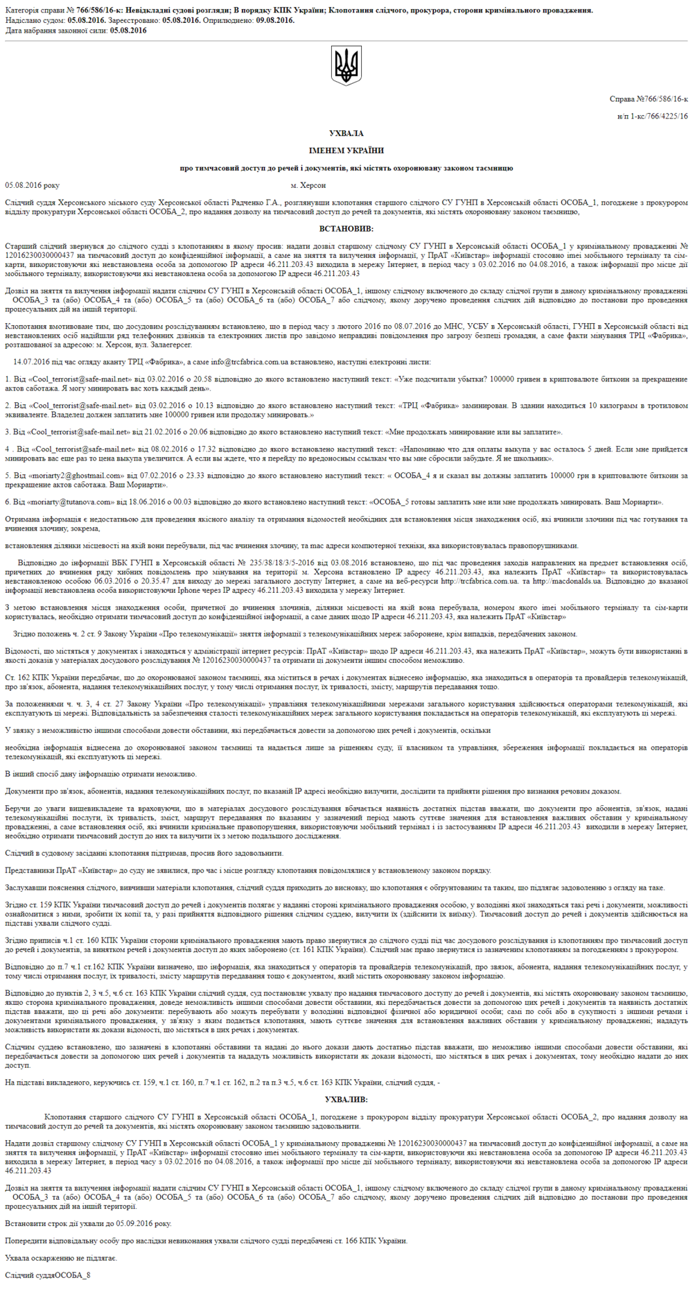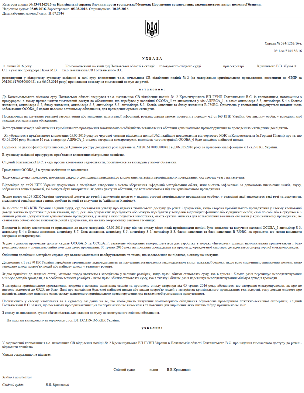 Именно этим желанием можно объяснить обилие в реестре судебных решений запросов в суды от полиции и СБУ на разрешения о проведении обысков и доступе к фермам биткоинов.