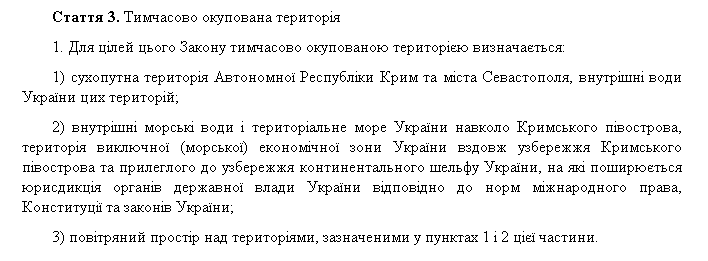 А главная юридическая коллизия состоит в том, что существует еще и закон об оккупированной территории. Однако он в качестве оккупированной называет только территорию Крыма, его прибрежную зону и воздушное пространство над ними. Неподконтрольные территории Донбасса в качестве оккупированных в этом законе вообще не упоминаются: