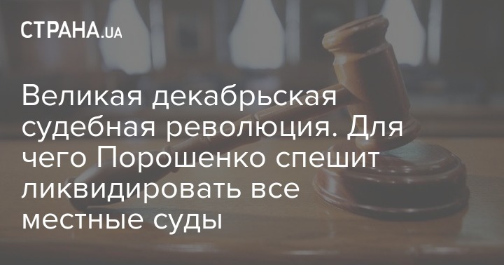 А именно - о задуманном президентом расформировании местных судов с последующим их преобразованием в суды окружные. Порошенко торопится: 31 декабря с последним ударом часов он теряет юридическую возможность создавать суды своими указами. Эта функция переходит к Верховной Раде.