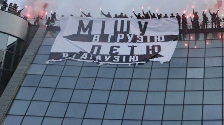 24 декабря на Майдане в Киеве национал-радикалы из "Азова" вывесили гигантский баннер "Мишу в Грузию, Петю в Гагаузию".
