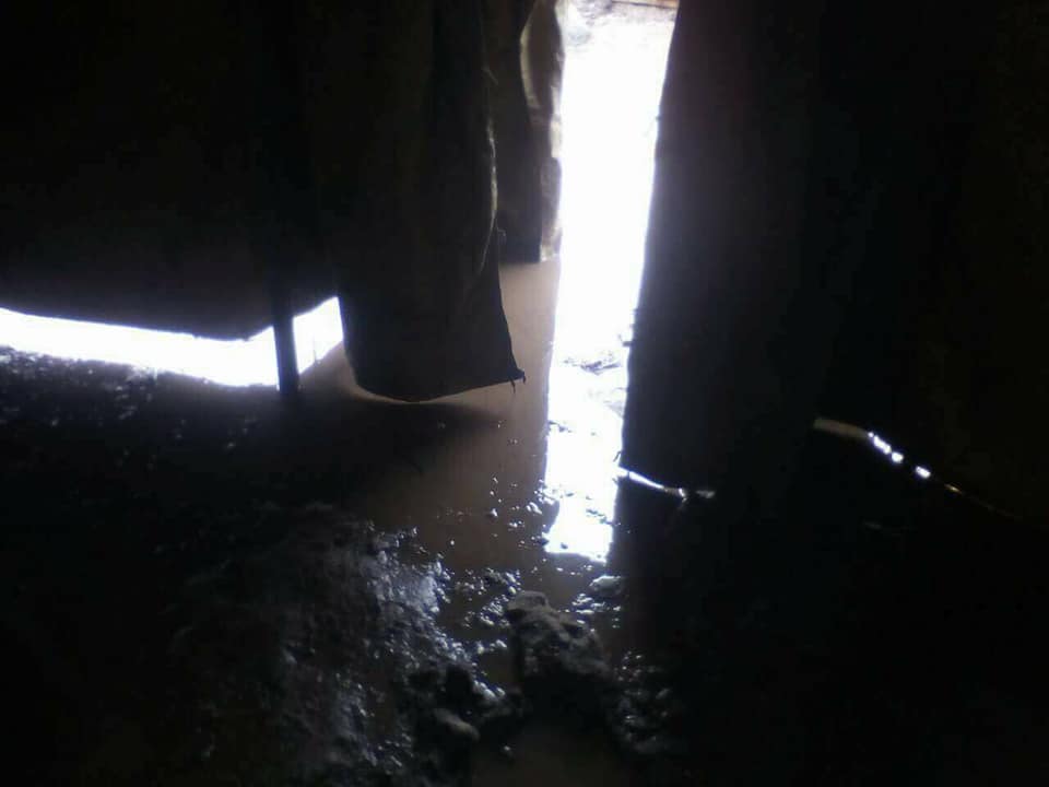 Вход в палатку, в которой живут резервисты, затопило из-за погодных условий. Фото: Виктория Кротова