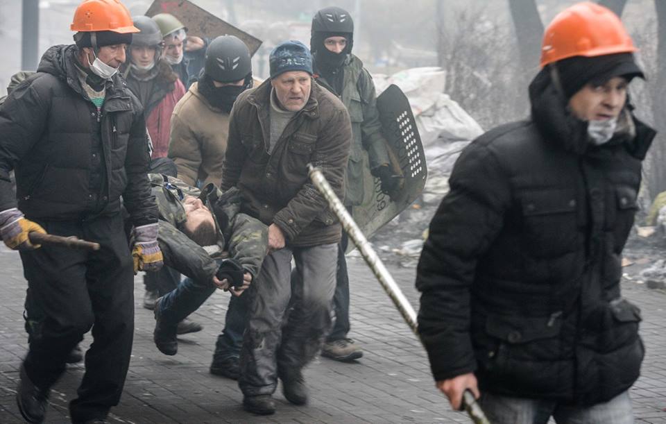 Вербич (справа в черном шлеме и маске) в день расстрелов на Майдане 20 февраля 2014 года находился на улице Институтской, источник фото: сensor.net.ua