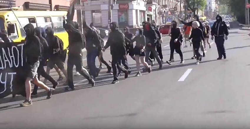 Участник марша "леваков", источник фото: скриншот youtube.com/Революційна Дія