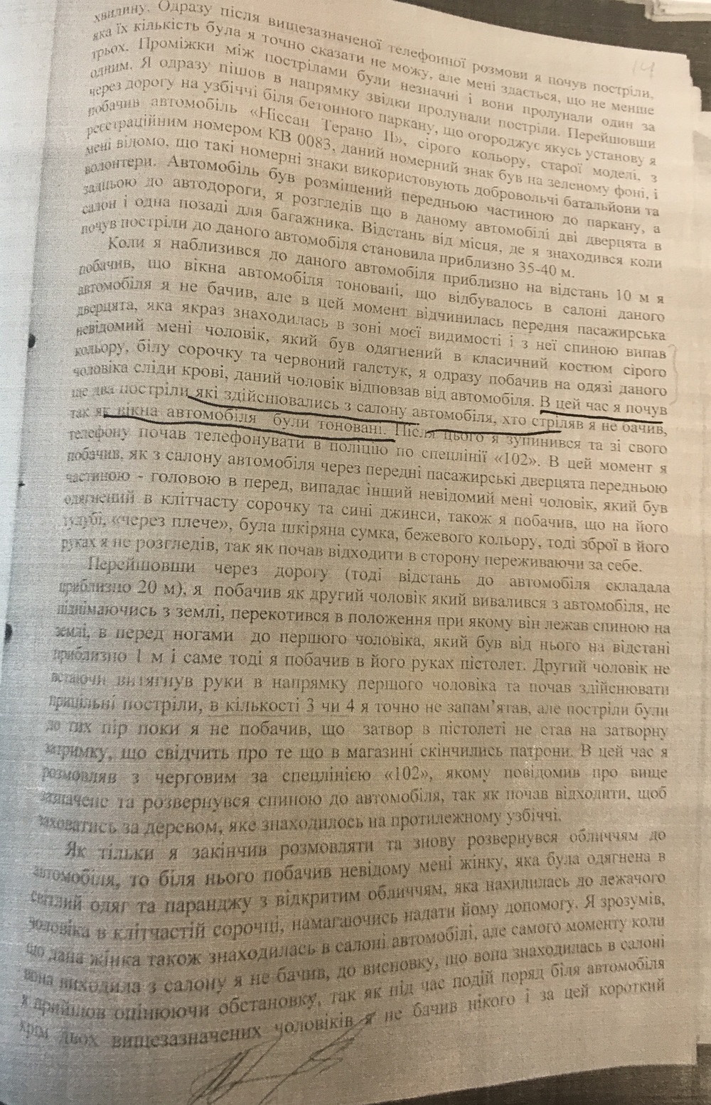 Изначально троица планировала ехать к зданию посольства Франции в Киеве (якобы для оформления документов для выезда семейной пары "добробатовцев" в Париж), но "киллер Кадырова" предложил повременить с этим визитом. Вместо этого он захотел записать еще одно интервью с ветеранами АТО. Те согласились ответить на расспросы "журналиста". И тогда сидевший за рулем иномарки Адам пересел на заднее сиденье к Амине.