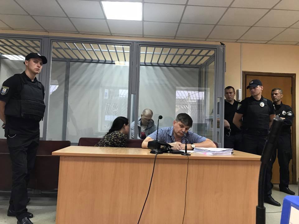 Обвиняемый Артур Кринари в боксе во время подготовительного заседения в Подольском райсуде Киева, источник фото: facebook.com/marina.matsegora