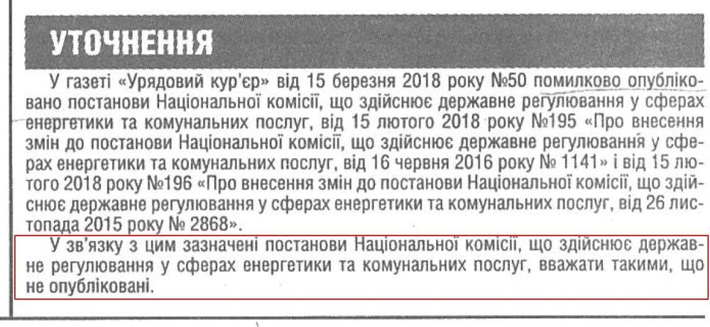 Физически это выражается в том, что печатное издание Кабмина "Урядовий курьер" (УК) не публикует решения Комиссии. А в законе о регуляторе указано, что решение НКРЭКУ вступает в силу лишь после публикации в УК.